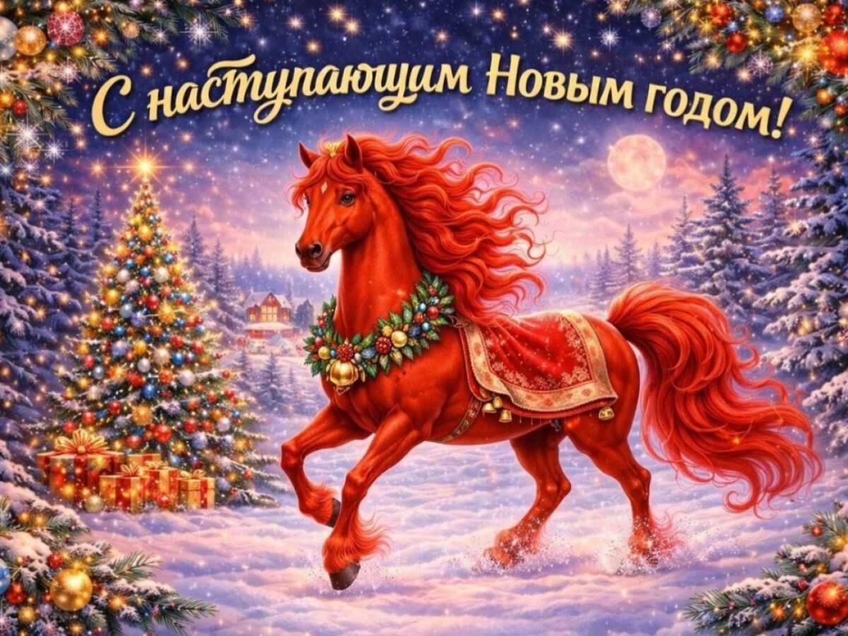 Совсем скоро наступит Новый, 2026 год. И уже сейчас можно отправить открытку или картинку с поздравлениями в мессенджерах своим коллегам, друзьям, родным, близким. Каждый год в восточном календаре связан не только с животным, но и с одним из пяти элементов (дерево, огонь, земля, металл, вода). 2026 год – Год Красной Огненной Лошади. Лошадь - это животное, которое ассоциируется с движением, активностью и стремлением вперед. Огонь придает Лошади еще больше энергии, страсти и импульсивности. Год Лошади часто считается временем больших перемен и новых начинаний. Выбирайте открытки с лошадкой и отправляйся близким. Предлагаем несколько вариантов: