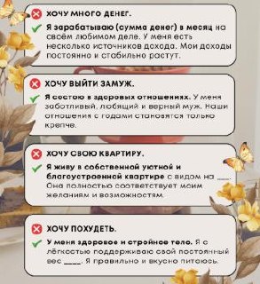 ❗️ Напоминаю, что Новогодняя ночь – это энергетически мощное время для загадывания желаний! Так что правило №1: чётко формируем цель Желание должно быть: ✔️Реалистичным ✔️Достижимым ✔️Измеримым ✔️Значимым для вас ✔️С чёткими временными рамками Правило №2: задействуем стихии ✔️Стихия Воды: шампанское ✔️Стихия Земли: бумажка с написанным на ней желанием ✔️Стихия Воздуха: произнесённое вслух желание (можно шёпотом) ✔️Стихия Огня: подожжённая бумажка с желанием Стихии усилят исполнение желаемого! С наступающим вас!🥂