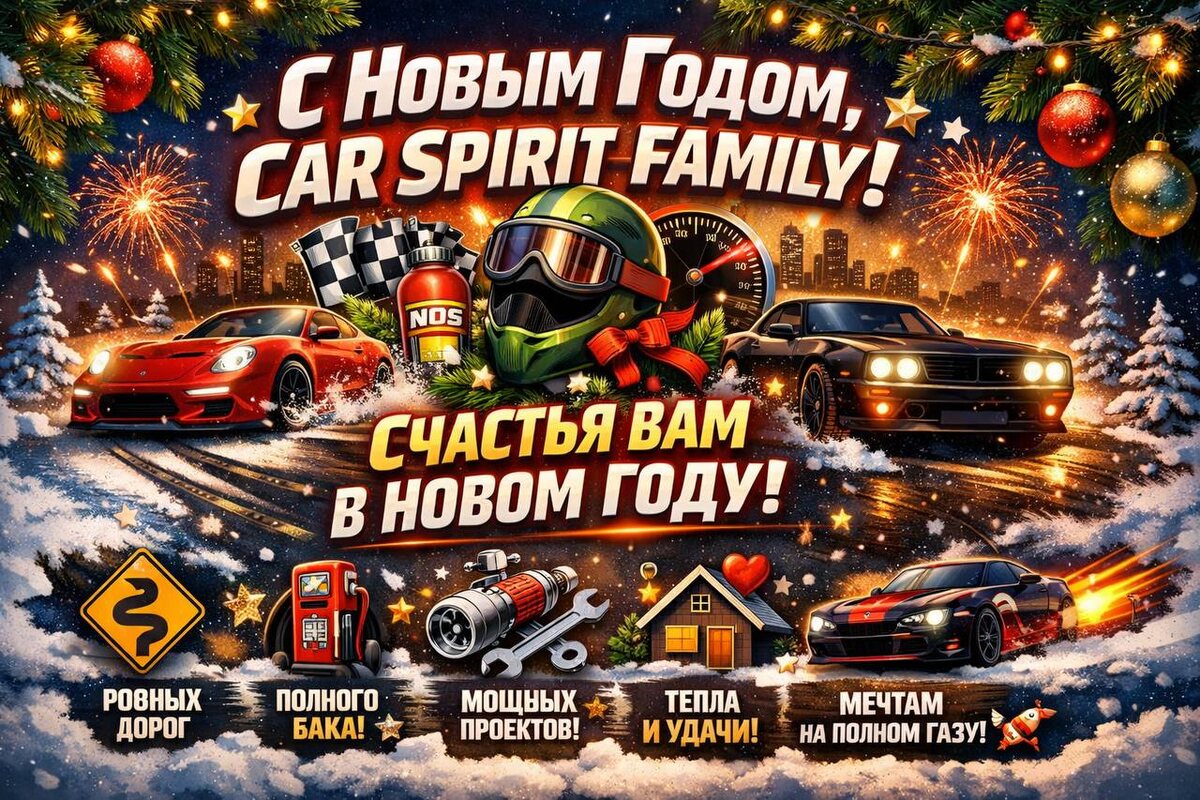 ! ✨🎄 Этот год был как длинная дорога: где-то жали газ в пол 💨 где-то притормаживали ⛔ но всегда ехали вперёд — вместе 🤝 Спасибо каждому, кто с нами: за лайки 👍 за комментарии 💬 за любовь к тачкам, скорости и настоящему автодуху 🏁 🚘🔥 В новом году желаем вам: — ровных дорог без ям 🛣️ — полного бака энергии ⛽ — мощных проектов и идей 💡 — железного здоровья 💪 — счастья в семье и тепла в доме 🏡 — чтобы мечты разгонялись до 300 и не знали ограничений 🚀 Мы не сбавляем обороты — впереди ещё больше контента, обзоров, эмоций и настоящего CAR SPIRIT 😎 С новым годом, друзья! Пусть 2026 будет на максималках! 🔥🔥🔥 #СНовымГодом #CarSpirit #Автодух #НовыйГод #Счастья #Удачи #Драйв #РовныхДорог #ПолныйБак #МечтыСбываются