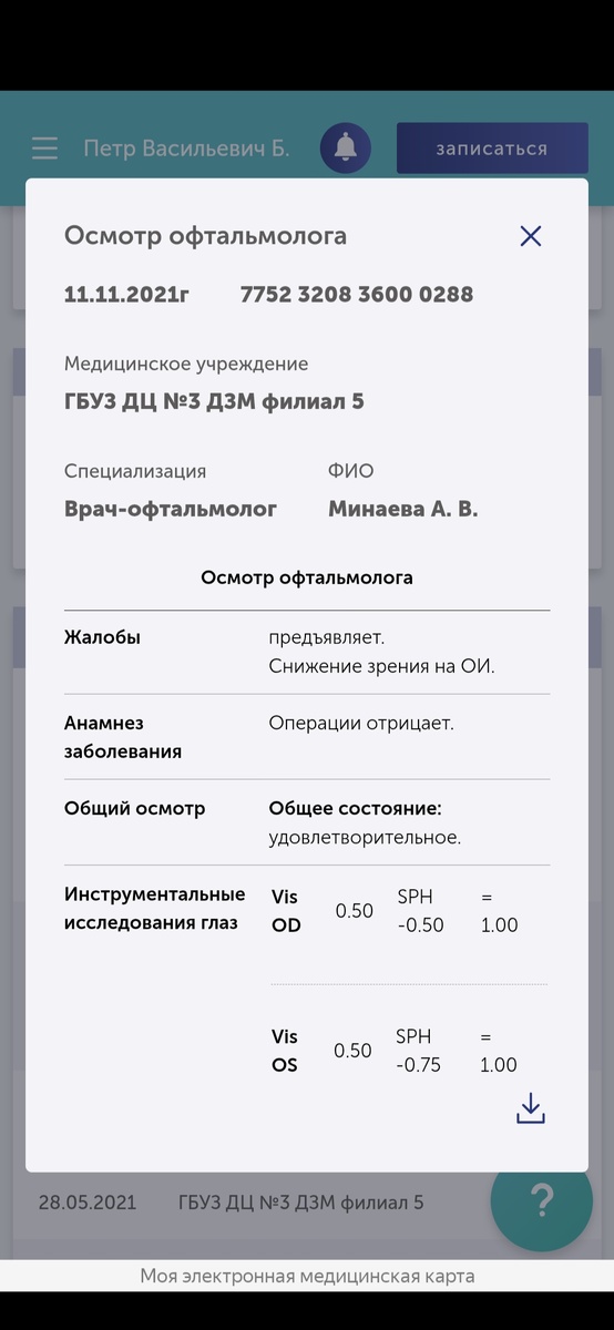 Обратился к офтальмологу, она подтвердила, что есть проблема со зрением и предложила обратиться в частную глазную клинику за рецептом на очки, поскольку по ОМС (почему-то) рецепт не выписывают.