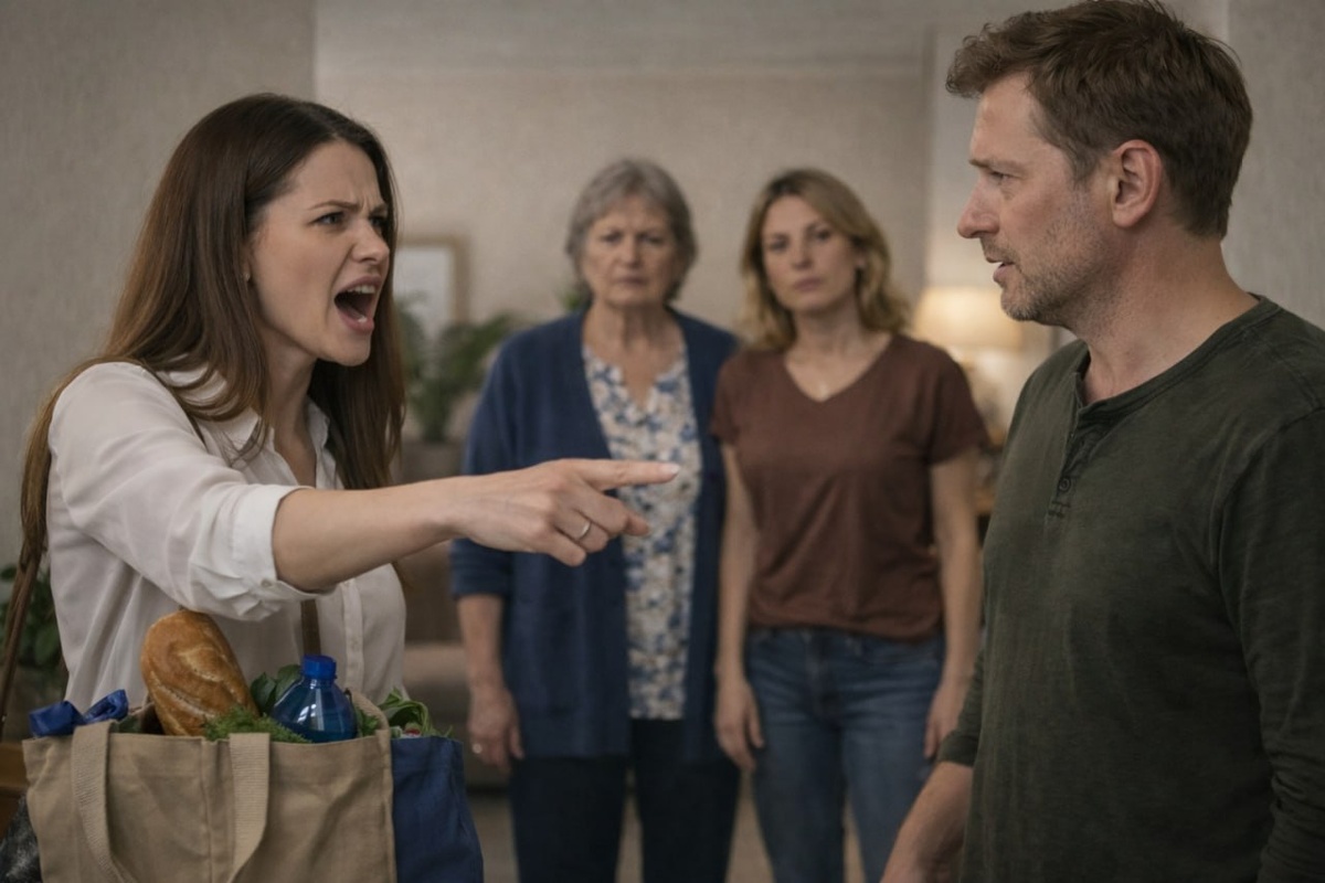 Алина замерла на пороге с продуктовыми сумками в руках. Из квартиры доносился незнакомый женский смех, звон посуды и детское нытьё. Она медленно открыла дверь и увидела картину, от которой внутри всё сжалось.