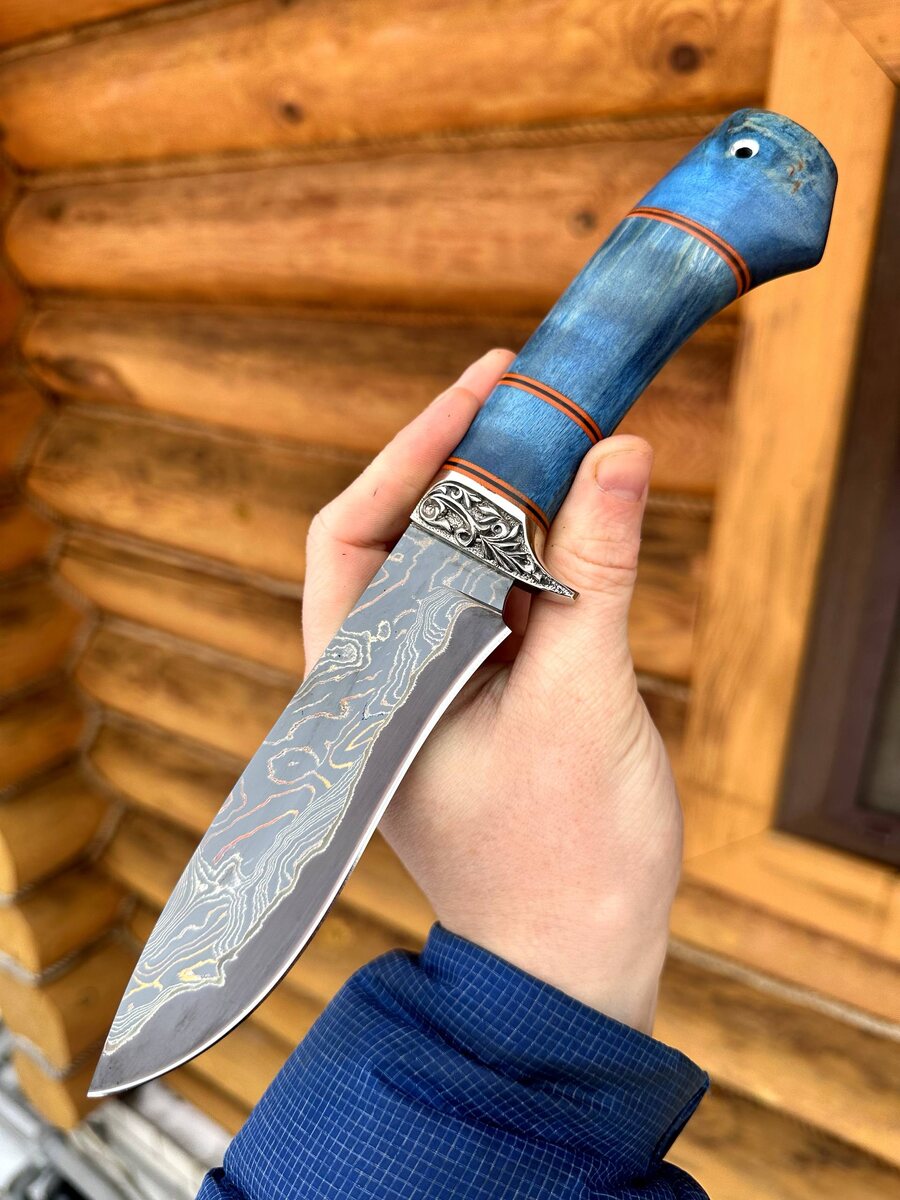 🔹 Клинок из сложного ламинированного дамаска с воронением — гарантирует прочность, коррозионную стойкость и индивидуальный рисунок стали. 🔹 Спуски от середины делают нож жёстким и устойчивым к боковым нагрузкам — оптимально для охоты, рыбалки, активного туризма. 🔹 Фальшлезвие на кончике — для точных проколов. 🔹 Анатомическая рукоять из стабилизированной карельской березы синей — надёжный хват даже в перчатках и влажной руке. 🔹 Заточка “в бритву” — нож легко справится с тонкими и деликатными работами. 🔹 Твердость клинка HRC 62 — долго держит заточку, не боится серьёзных нагрузок. 🔹 Ножны из натуральной кожи в комплекте. По желанию — формованные ножны (+8 000 руб). 💰 Цена: 21 320 руб. (вместо 25 650 руб.) 📲 Для заказа: пишите @Nazarklinokbot или на WhatsApp/Viber +7 910 134-38-31 #КузницаНазарова #ручнаяработа #дамаск #охотничийнож #вариантырукояти #надежность #сделановроссии