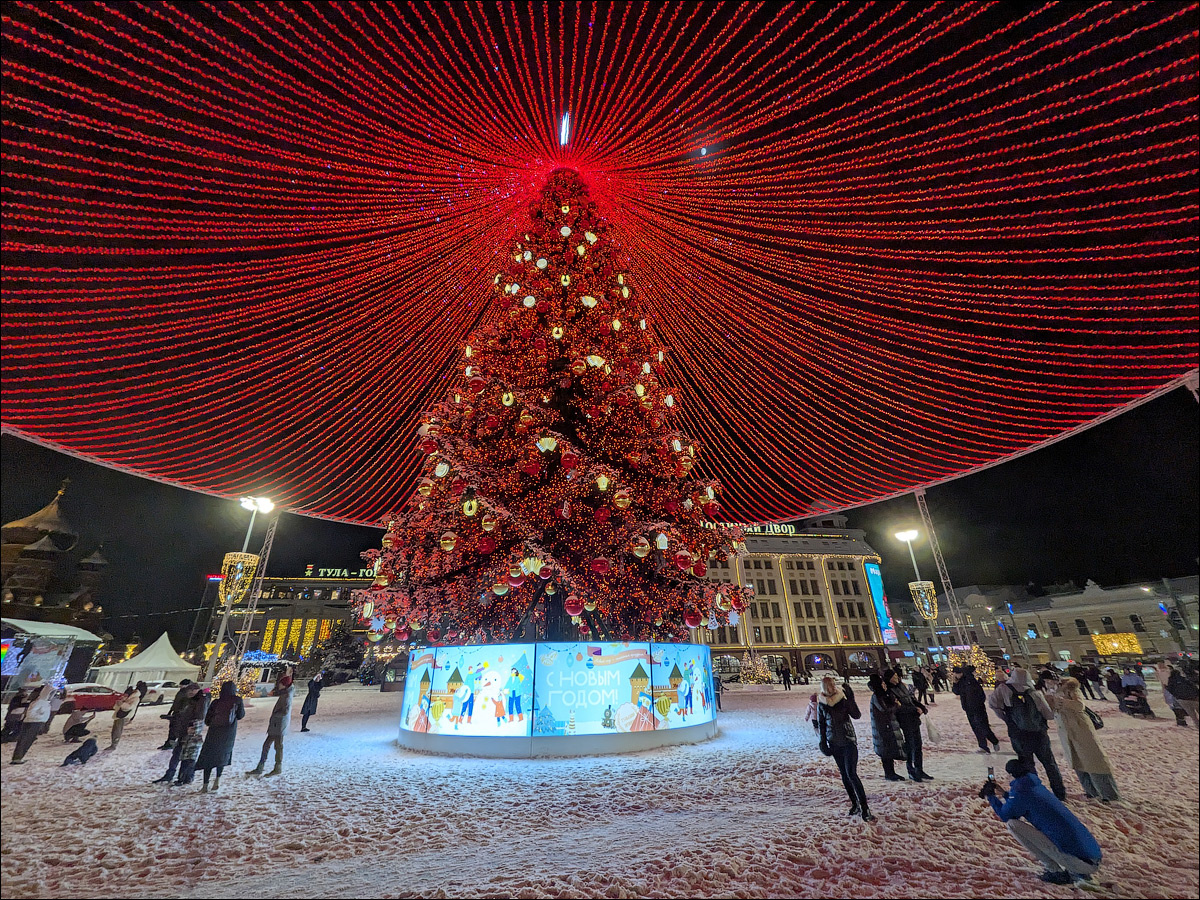 Вот и закончился ещё один год. Спасибо ему, каким бы он ни был. В нём было много путешествий и впечатлений, он запомнится, отразится в наших работах — в фотографиях, рассказах, рисунках… Давайте делиться друг с другом тем, что подарил нам прошедший год! И вместе начинать путешествие в год наступающий. С Новым годом! Пусть он будет не хуже предыдущего — может быть, даже и лучше. Давайте относиться к каждому дню, как к новому приключению — пусть небольшому, но желательно приятному. Давайте не расставаться в этом путешествии с теми, кого мы любим, давайте дарить друг другу что-то новое, наблюдать, радоваться, творить. Делать друг друга немножко богаче. Скорее всего, мы путешествуем по своим жизням именно для этого! Спасибо, что читаете наши дневники, смотрите фотографии и идёте рядом. Да здравствует созидание и творчество! Новый год начинается! Поехали! Приглашаем вас на главную площадь Тулы, посмотреть на нашу наконец-то красивую ёлочку! Рядышком, у «Гостинного двора», сделали совершенно