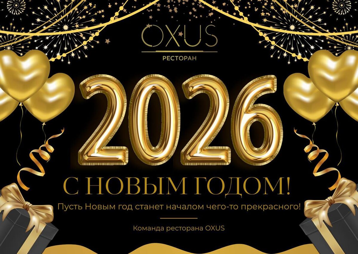 ! От всего коллектива ресторана «ОXUS» поздравляем Вас с наступающим Новым 2026 годом! 🥂 Пусть мечты сбываются! А Новый год подарит много радостных моментов, счастья, благополучия, процветания и новых приятных встреч в стенах ресторана «OXUS» в 2026 году!🎆