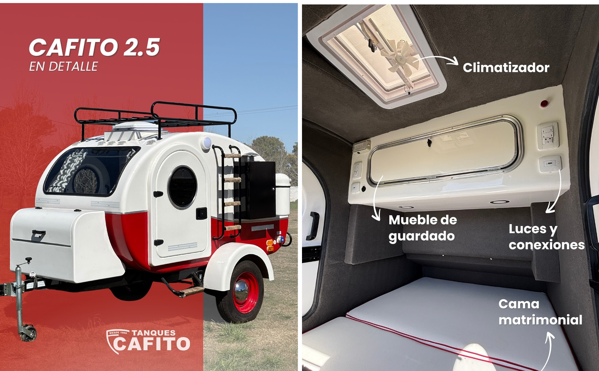 Cafito Mini 2.5: ретро-капля из Аргентины с кухней и душем для путешествий Cafito Mini 2.5 - это компактный трейлер-капля из Аргентины. Он сочетает ретро-дизайн и практичные решения. Внутри - кровать, снаружи - кухня и душ. Доступны базовая и премиальная версии. Цена стартует с 5400 долларов (422 000 рублей). Оценим, чем он интересен. Фотография: 110km.ru В мире автопутешествий не всегда нужны большие дома на колесах. Иногда достаточно простого, но продуманного решения, чтобы проехать по дороге и получить максимальное впечатление. Именно таким стал Cafito Mini 2.5 - миниатюрный трейлер-капля от аргентинской компании Tanques Cafito, который сочетает в себе стиль ретро и современные удобства. Фото: Tanques Cafito Tanques Cafito - производитель со стариной, начавший свой путь еще в 1969 году с выпуска промышленного оборудования и резервуаров из армированного стеклопластика. Этот же материал лег в основу новых прицепов, что обеспечивает легкость, прочность и надежность конструкции. Cafito