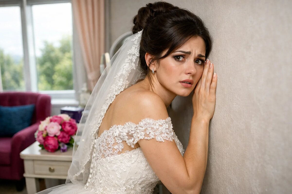 Ирина стояла перед зеркалом и не узнавала себя. Платье сидело идеально, фата легла мягкими волнами. Визажист ушёл пять минут назад, оставив её одну. До выхода к гостям — полчаса. Она попыталась улыбнуться своему отражению, но губы дрожали.