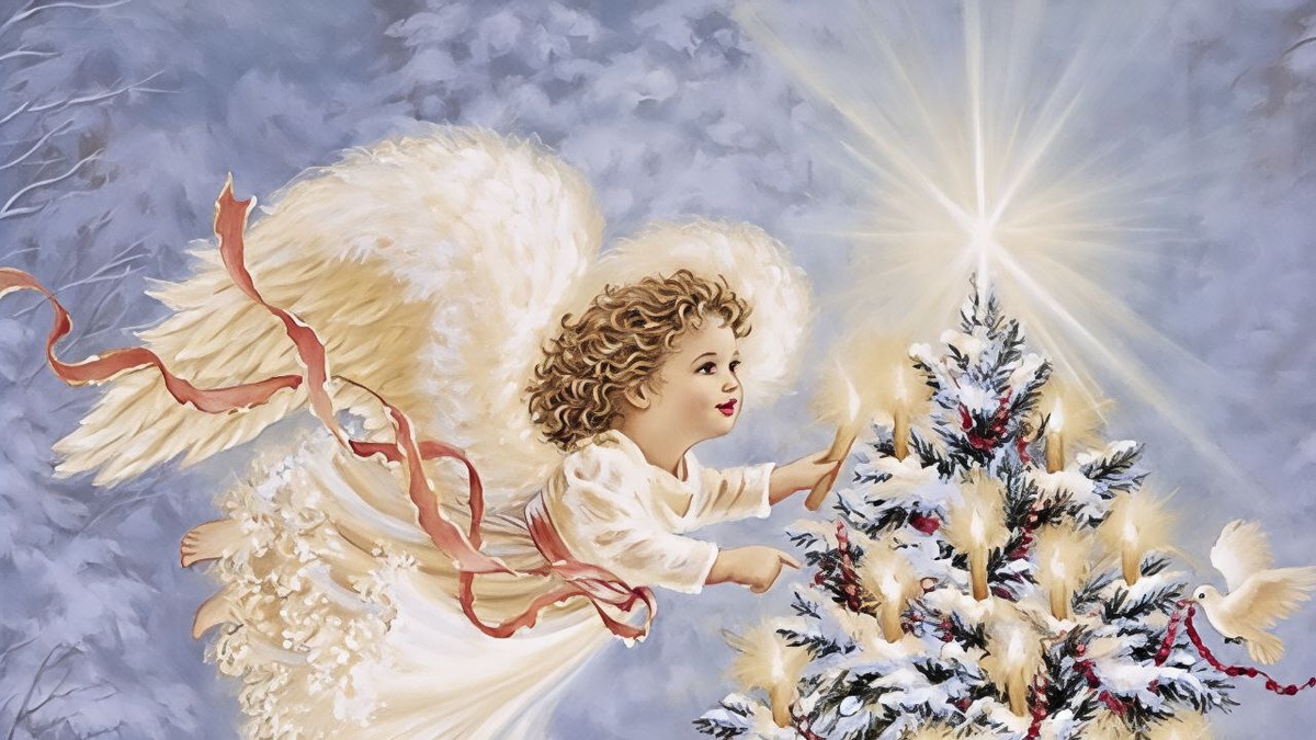 принимали участие в великом торжестве. Но самыми счастливыми выглядели три дерева, стоящие у самого входа в пещеру: им хорошо видны ясли и покоящийся в них Младенец, окружённый сонмом Ангелов. Это стройная пальма, прекрасная пахучая маслина и скромная зелёная ёлка. Всё радостней, всё оживлённее становится шелест их ветвей, и вдруг в нём явственно слышатся слова: — Пойдём и мы поклонимся божественному младенцу и поднесём ему наши дары,— говорила, обращаясь к маслине, пальма. — Возьмите и меня с собой! — робко промолвила скромная ёлка. — Куда тебе с нами! — окинув ёлку презрительным взглядом, гордо ответила пальма. — И какие дары можешь ты поднести божественному младенцу?— прибавила маслина. — Что у тебя есть? Только колючие иглы да противная липкая смола! Промолчала бедная ёлка и смиренно отошла назад, не осмеливаясь войти в пещеру, сиявшую небесным светом. Но ангел слышал разговор деревьев, видел гордость пальмы и маслины и скромность ёлки, ему стало жаль её и по своей ангельской добро
