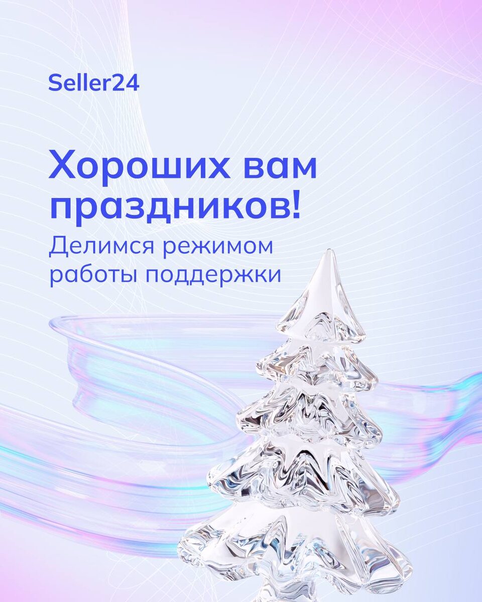Для вашего удобства делимся графиком работы Seller24 в праздники. • Платформа работает в штатном режиме. • Техподдержка работает в режиме дежурства с 31 декабря по 11 января. Но если вопрос срочный и не требует отлагательств, отметьте в вопросе приоритет – мы ответим вам в течение суток. • В новогодние праздники наш офис будет закрыт, но дежурные сотрудники обеспечат работу кабинетов 2, 5, 8 и 9 января. • Менеджеры отдела продаж отдыхают, вы можете оставить заявку на аудит магазина – поступившие обращения будут обработаны после праздников. Желаем отличных результатов на маркетплейсах в 2026 году!