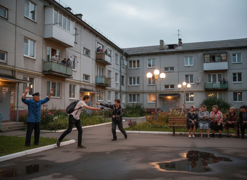 Вечером в городе М во дворе дома на Песочной улице показали короткий уличный спектакль «Шурик: дубль во дворе» — без сцены, зато с лестницей, балконом и соседями в роли живых декораций. Постановку собрала местная труппа «Третий подъезд»: 35 минут, вход за 250 рублей или «как не жалко» в коробку из-под обуви. Я стоял у лавочки рядом с бабушками, которые сначала ворчали на шум, а потом попросили «ещё раз тот момент с сумкой». Поводом стали разговоры вокруг «приключения шурика 2025»: тему здесь вспоминают то в афишах, то в школьных чатах, где спорят, «можно ли переснимать классику руками». Режиссёр объяснил проще: «Мы не соревнуемся с кино, мы соревнуемся с привычкой сидеть дома». В интерпретации двора Шурик вышел не героем из прошлого, а вечным студентом с пауэрбанком и распечатанным расписанием электричек, а «погоню» сыграли так, что дворник на минуту принял её за реальную и попросил «не бегать по газону». После показа люди не разошлись — обсуждали, кто из соседей «актёр от природы», и
