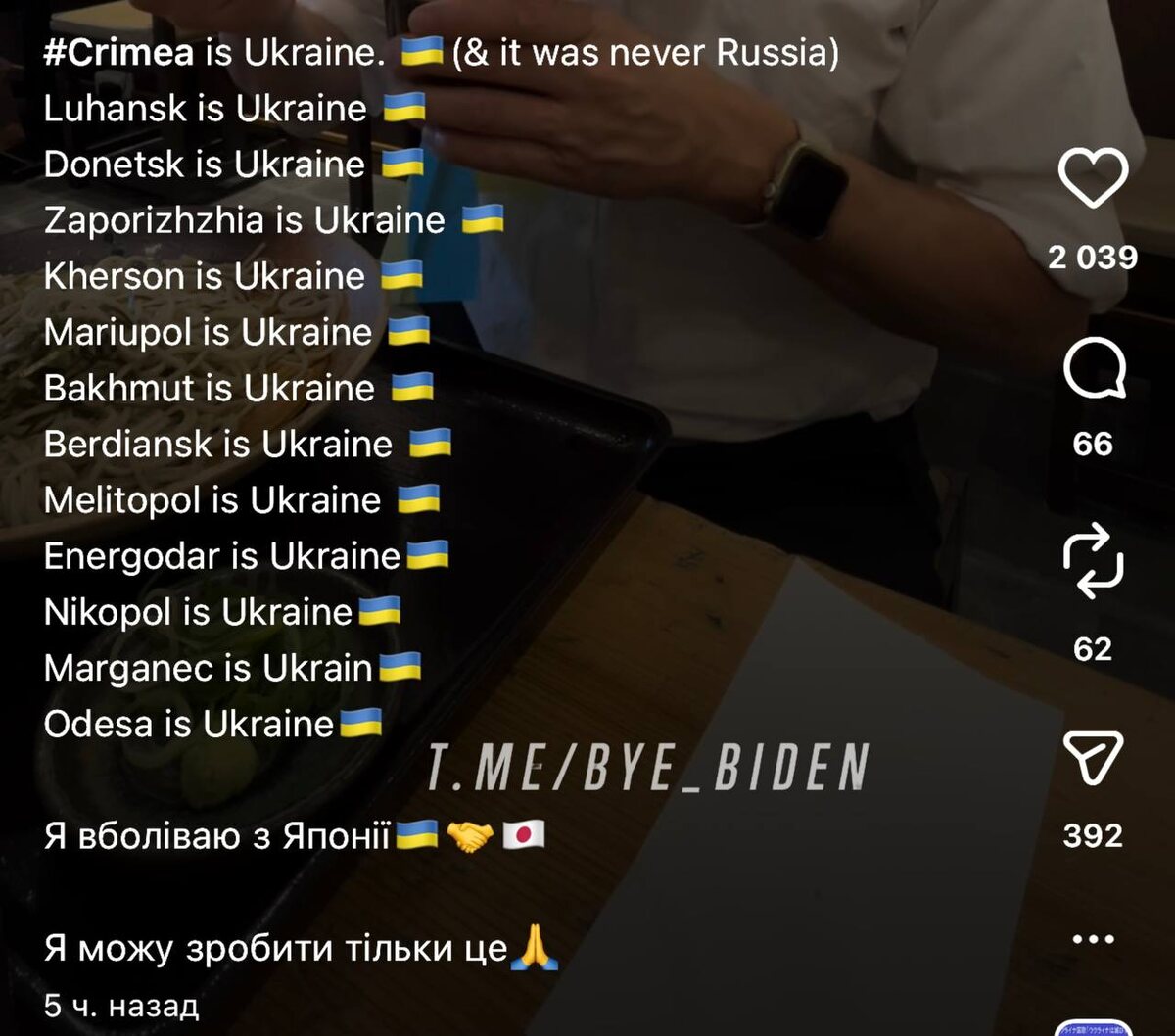 И никогда не был Россией. Луганск — это Украина. Донецк — это Украина…» Розоволосому японцу, конечно же, это виднее. Через политику очередной фрик пытается привлечь к себе внимание в соцсетях. У себя на родине он носит украинские флаги, снимает видео, как ест лапшу, и «болеет за Украину». Какое прозвище ему дадим? 👍«БайБайден» в МАХ