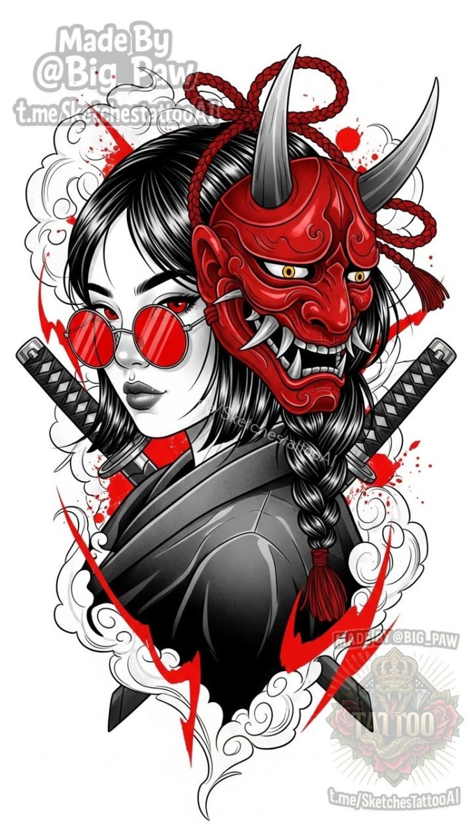 #япония #девушка #маска #эскиз #тату #татуировка