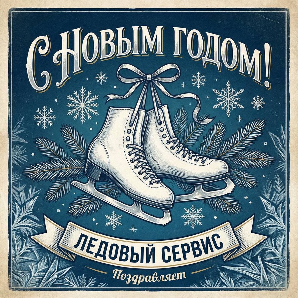 ! От всей команды «Ледового сервиса» поздравляем вас с наступающим Новым годом! Пусть в каждом доме будет тепло, спокойно и светло, рядом — близкие люди, а впереди — только хорошие поводы для радости. Желаем настоящей зимы: со снегом, смехом, катанием на коньках и ощущением праздника в каждом дне. Пусть лёд будет ровным, движения — уверенными, а новый год принесёт лёгкость, вдохновение и множество ярких моментов. С праздником и до встречи на льду! Ваш «Ледовый сервис»