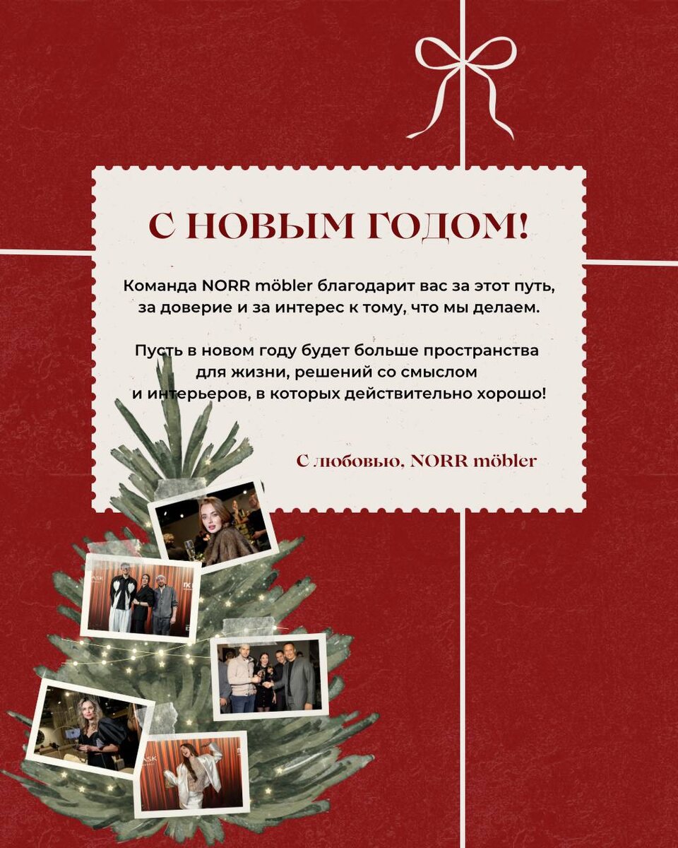 🎄 Этот год был разным, но для нас он прежде всего - про людей, диалог и общее понимание того, каким может и должно быть пространство вокруг. Мы благодарны партнёрам, дизайнерам и всем, кто был с NORR möbler, делился доверием и выбирал нас в своих проектах! Пусть в новом году будет больше времени на себя и свой дом, больше спокойных решений и интерьеров, в которых комфорт чувствуется не сразу, а остаётся надолго. С теплом и благодарностью, NORR möbler ❤️