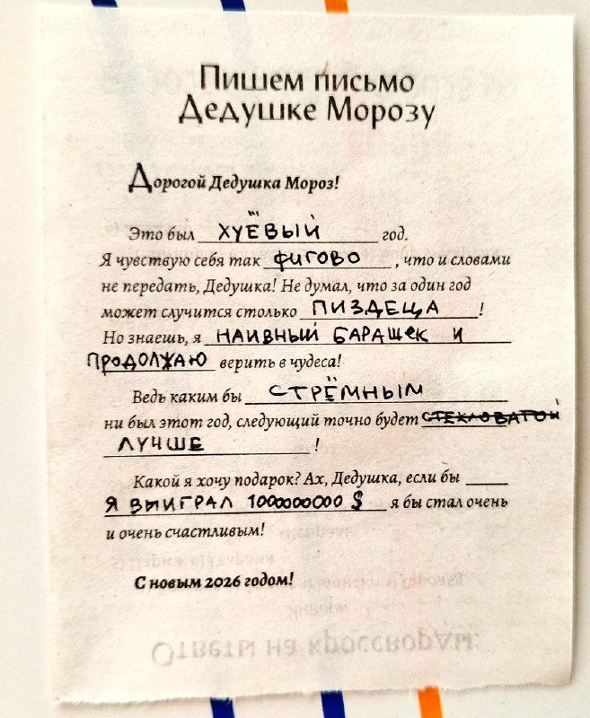 Люди присылают нам письма деду морозу, которые они написали в отрывном календаре