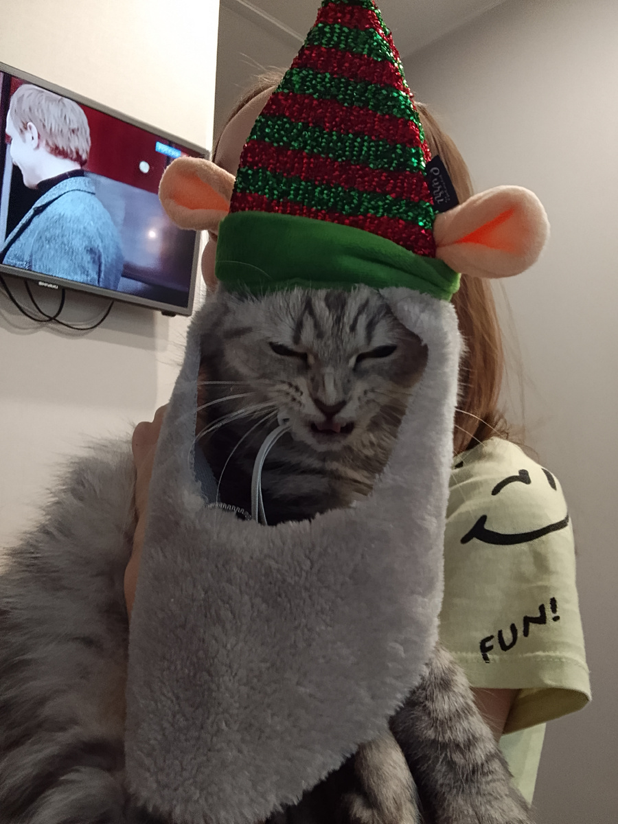 Но моя кошка(буся) видимо не рада нг (ВНИМАНИЕ!! не одно животное психологически не пострадало на данном фото!!!)