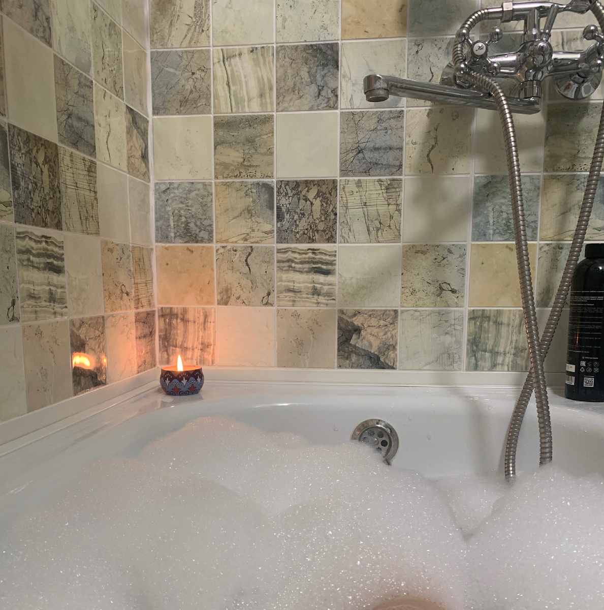 Последний рабочий день года тянулся мучительно долго. Честно говоря, я его откровенно досиживала. Из моих никто не приходил, а всех звонивших я перенаправила на "после праздников". Едва дождавшись конца работы, забрала подаренное шампанское (весьма кстати оно, а то у меня был закуплен брют, который сын пить не будет, а это принесли - полусладкое) и потащилась домой. Дома собрала скромные пожитки в виде ноутбука, кое-какой косметики и пары фруктов, и отправилась в свое потайное гнездо, где могу побыть одна и отдохнуть от людей, даже если эти люди - собственные дети. На самом деле я жду доставку холодильника, и чтобы с утра не вставать рано и не нестись бегом на такси, решила спокойно приехать с вечера и приятно провести время наедине с собой. Как и планировала в прошлый раз, прихватила с собой пену, аромасвечи, лавандовое мыло, маску для лица, любимый баттер для тела. Полежала, наслаждаясь согревающей ванной, успокаивающим треском лопающихся пузырьков пены, трепыханием пламени горящей с