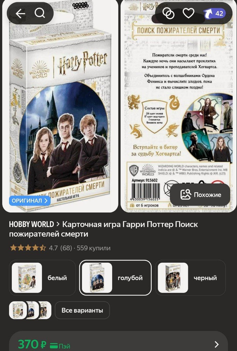 Карточная игра Гарри Поттер Поиск пожирателей смерти за 370