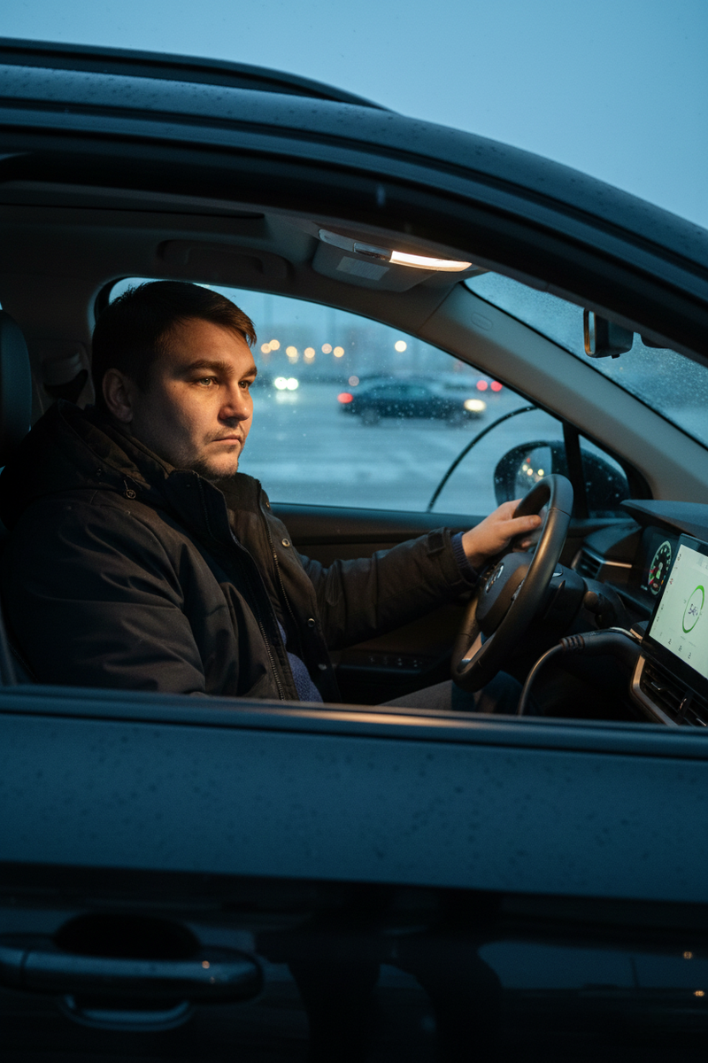 Тест-драйв. Сажусь, нажимаю кнопку старта. Тишина. Непривычно. Педаль газа — машина рванула вперёд плавно, но резко. Будто кто-то толкнул сзади.