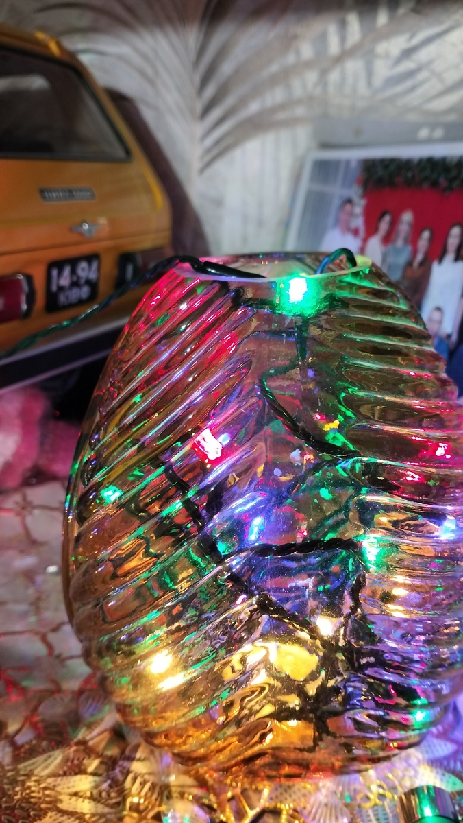 Расскажу немного как мы встретили этот праздник. Мне очень хотелось создать праздничную атмосферу дома для детей и вчера я купила несколько светодиодных гирлянд. Ёлку в моей семье всегда наряжали 31 декабря, ещё и вечером, поэтому я особо не торопилась с этим. Кончилась моя неторопливость тем, что Саша привез сегодня ёлку со старой квартиры без крестовины и игрушек😅 Но хоть догадался захватить крошечную ёлочку, которая в итоге и стала главным символом праздника. Я решила украсить разноцветной гирляндой нашу белую стенку и задействовать для этого свои декоративные стеклянные вазы. Получилось довольно мило.