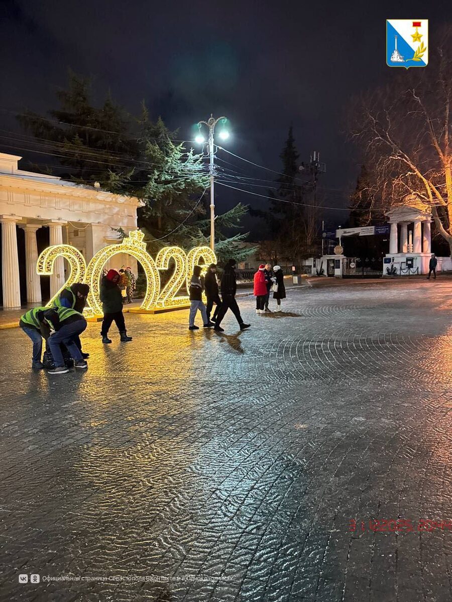 Коммунальщики прямо сейчас прислали фотографии из центра города, где многие севастопольцы привыкли отмечать Новый год