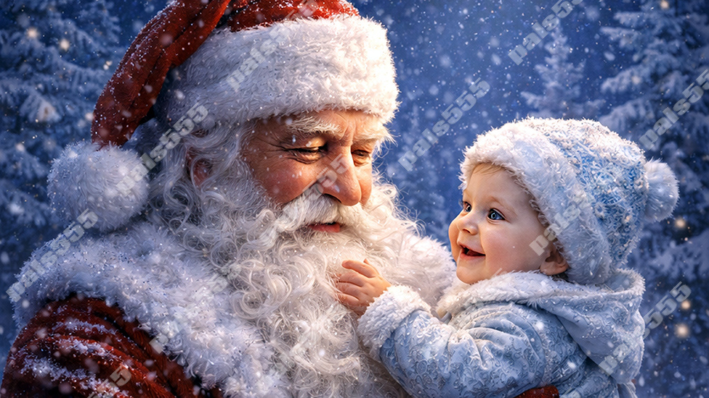 Дед Мороз берёт внука на руки осторожно, как берут не ребёнка — а время. Снег вокруг замирает, даже ветер становится тише, будто понимает: сейчас говорится главное. В глазах старого Мороза — не усталость, а глубина прожитых лет, в которых было всё: морозы и оттепели, войны и примирения, потери и возвращения.