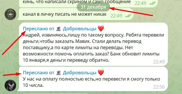 ⚡️⚡️⚡️⚡️⚡️⚡️⚡️⚡️ Друзья, мошенники не останавливаются даже в новогоднюю ночь! К нам поступило уже несколько обращений из РАЗНЫХ источников и РАЗНЫХ наших знакомых, что ЯКОБЫ им пишут ДОБРОВОЛЬЦЫ с сообщением (на фото 1) Не ведитесь - это МОШЕННИКИ, Добровольцы НИКОМУ НЕ ПИШУТ В ЛИЧНЫЕ СООБЩЕНИЯ - это невозможно ТЕХНИЧЕСКИ!!!! Все наши контакты тут - НА САЙТЕ Связаться с нами вы также можете через сообщения в канале (на фото 2) По любым вопросам, которые у вас возникают, если вам написали якобы "Добровольцы" пишите в этот БОТ https://t.me/dobrovoltsy_msk_bot Это единственный бот обратной связи Добровольцев в телеграмме. МЫ НИКОГДА и НИКОМУ не пишем от имени Добровольцев - это НЕВОЗМОЖНО ТЕХНИЧЕСКИ!!!! PS. Я, Уватенко Александр, позывной "Маньяк", являюсь генеральным директором МОО Добровольцы, (мой личный канал), НИКОГДА НИ КОМУ НЕ ПИШУ сообщений с текстом как на первом фото - это МОШЕННИКИ!!! ВСЕ официальные контакты указаны на сайте Добровольцев и в канале (в подписи, будет