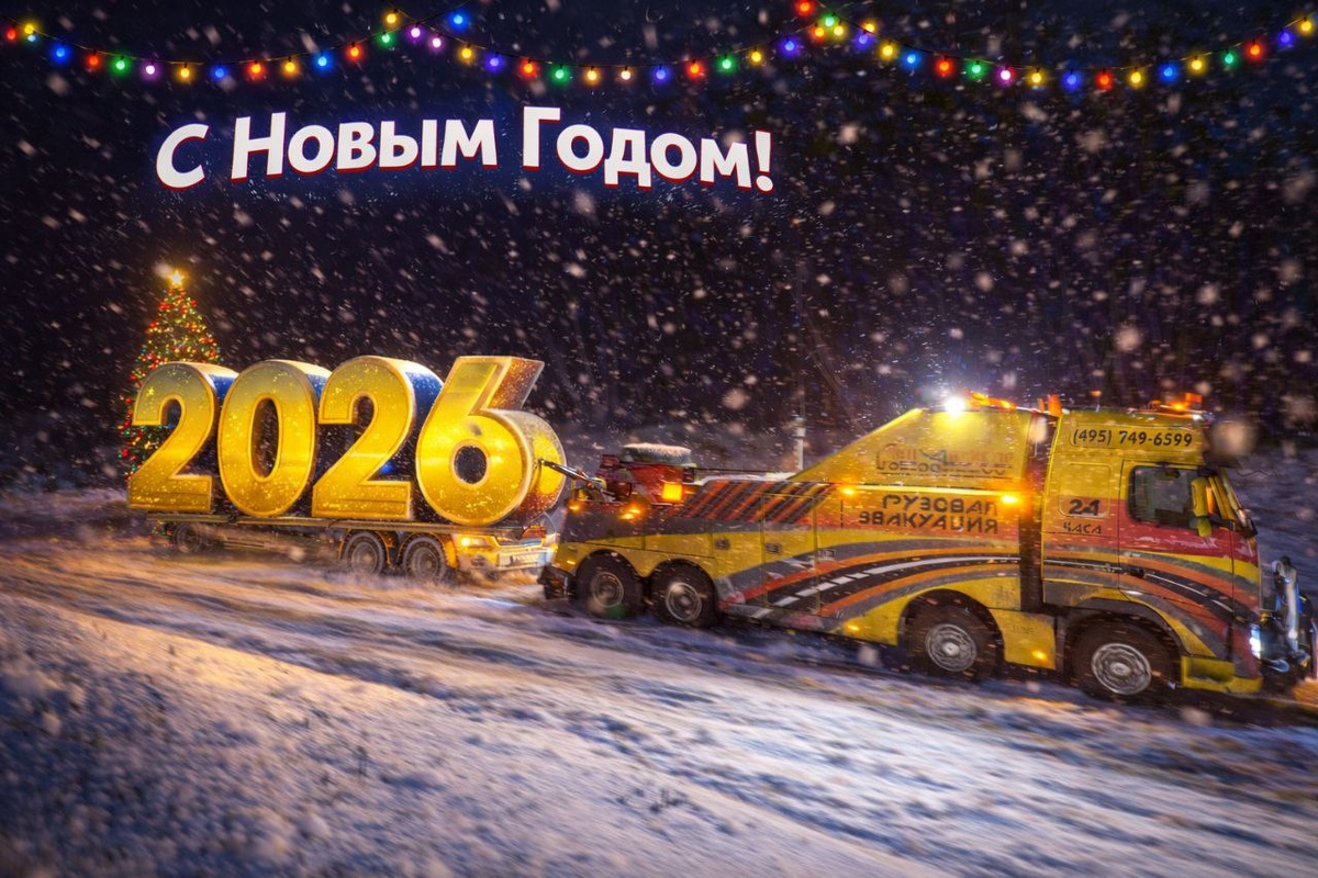 С Новым годом поздравляет команда СпецБуксир! 🎄🚛 Пусть в 2026 году ваша дорога будет ровной, без заносов и внезапных остановок, а любые