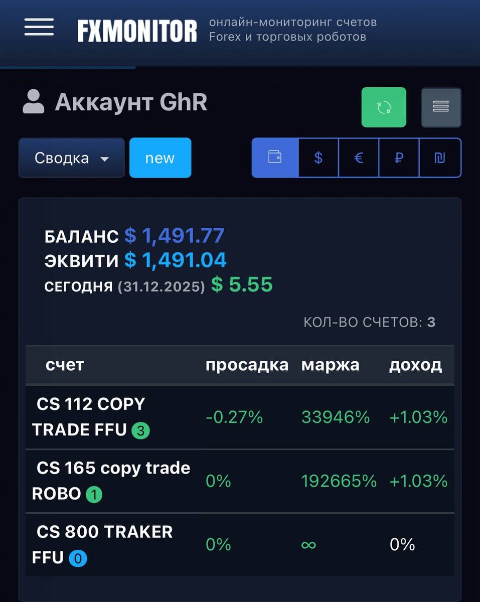 $. Итого: 300$ за последних 3 месяца, счета разгонять у меня не получилось, консервативная торговля на ботах мне ближе ,в 2026г будут интересные изменения в подходе к этому делу🤑