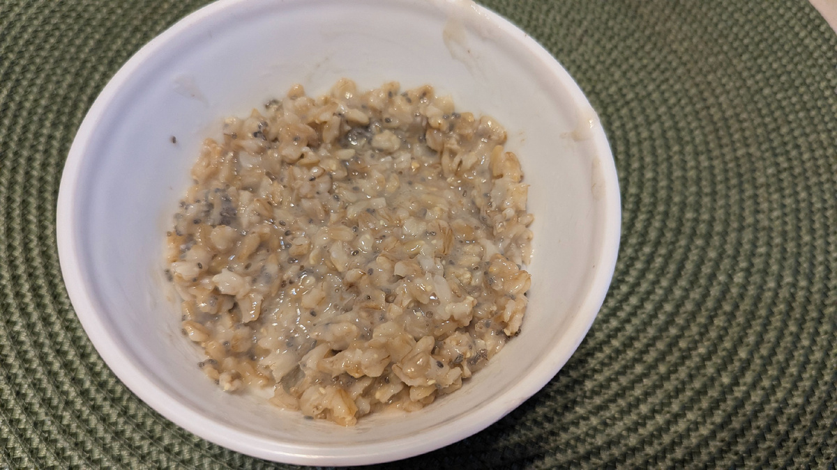 Завтрак был аскетичным. Овсянка на воде с семенами чиа.
