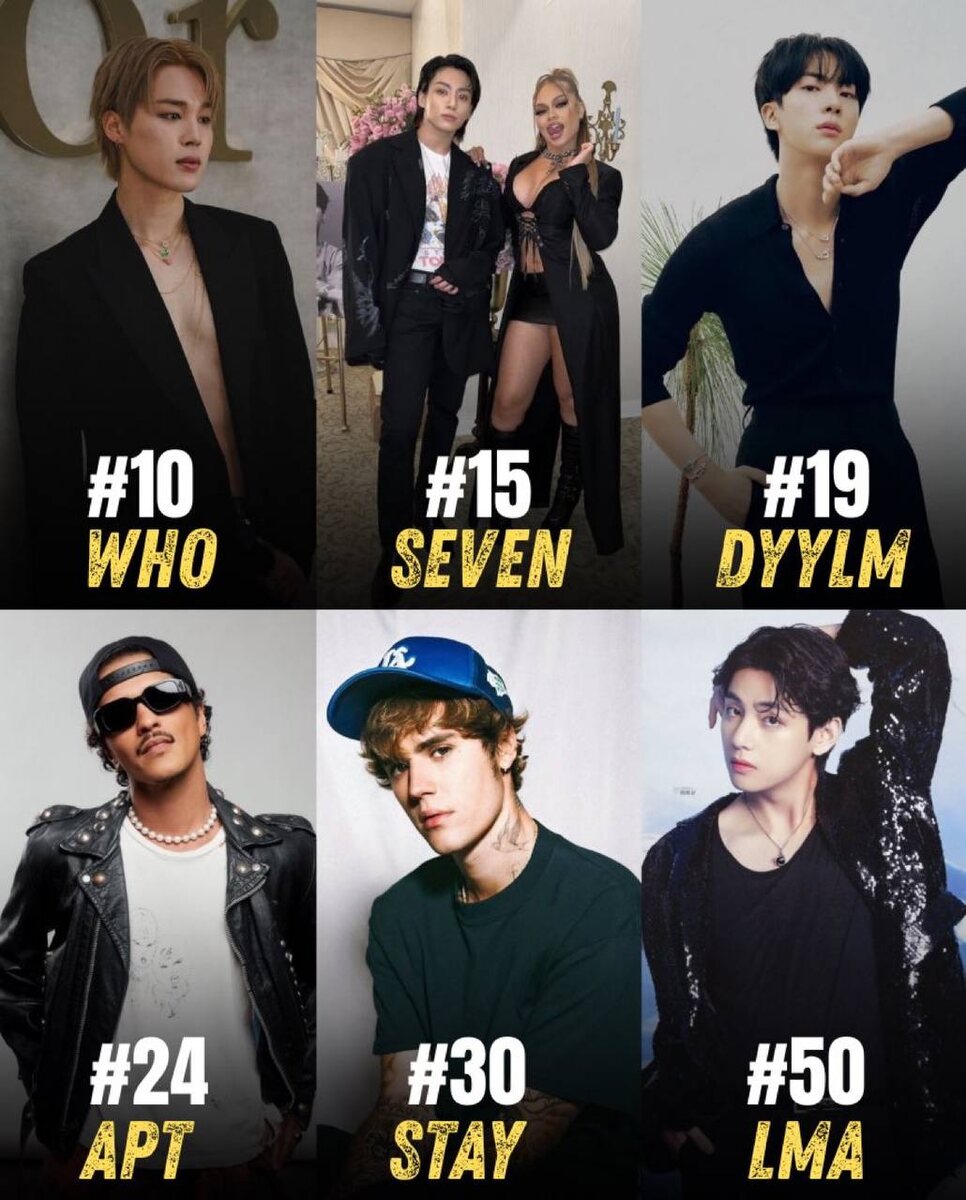 ): 10. "Who" - Чимин 15. "Seven" - Чонгук 19. "Don't Say You Love Me" - Джин 50. "Love Me Again" - Тэхён cr.cocojm_ot7 #JIN #JHOPE #JIMIN #JK @kumihobts