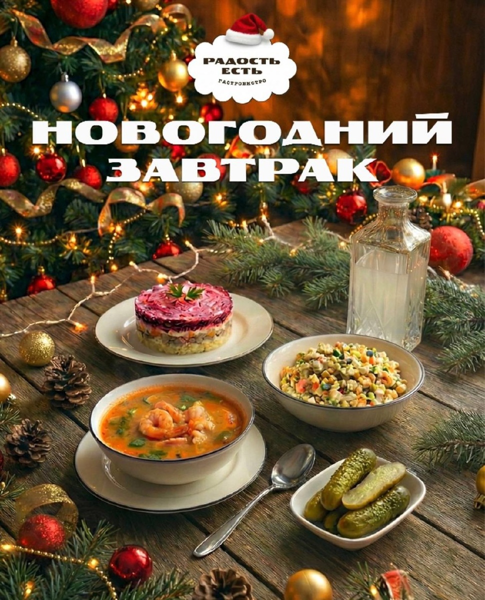 » 🎄 С 8:00 до 12:00 вас ждет удлинённый новогодний завтрак в формате шведского стола. Привычные блюда + праздничные вкусы: холодец, селёдка под шубой, рассол, малосольные огурчики, том-ям с морепродуктами. И заботливый бонус: суп-лапша для тех, кому с утра особенно нужна поддержка 🤗 📍 «Прибрежный квартал», ул. Голубая, 1Б Гастробистро «Радость есть»