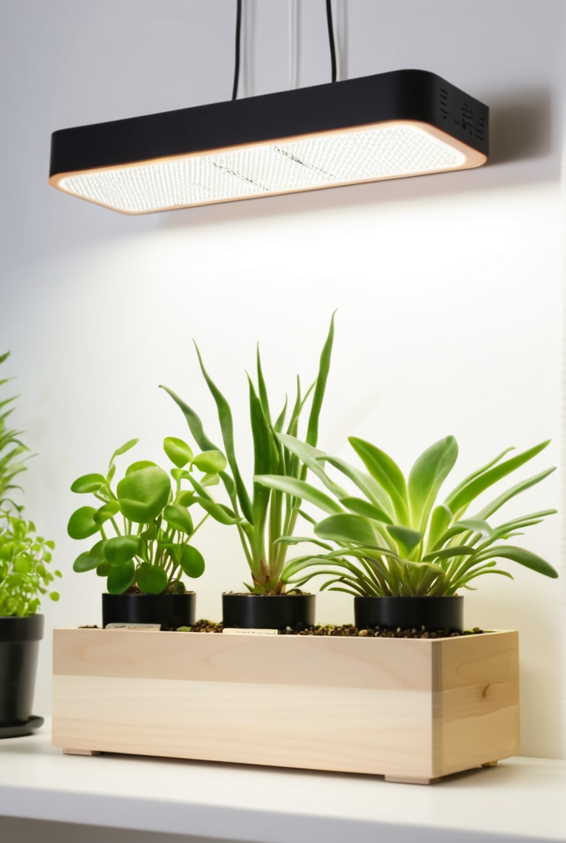 - Суккуленты: требуют мощный полный спектр, высокая мощность.