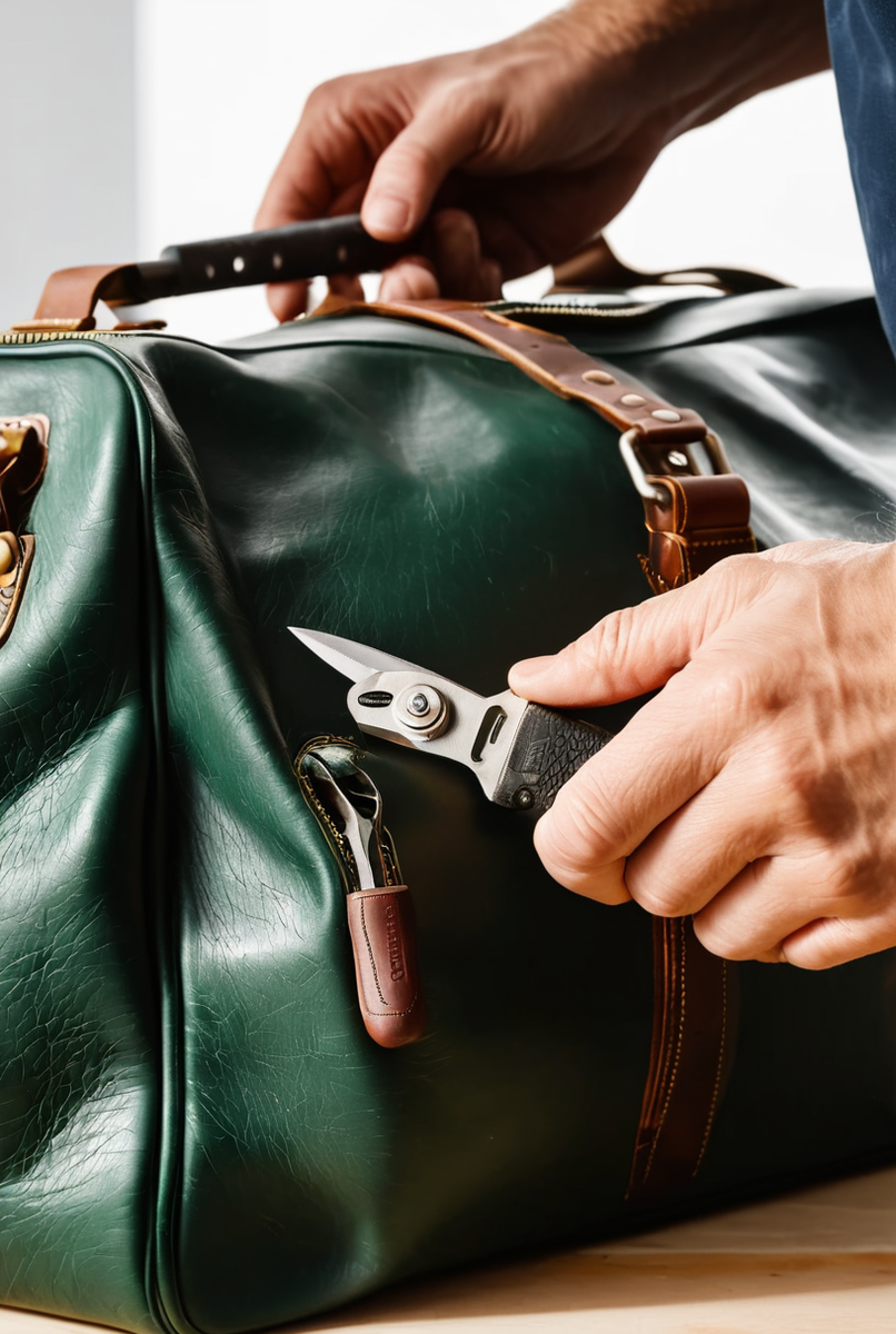 - Подготовка и демонтаж: Вам понадобятся отвертка, пассатижи, шило. Для начала полностью освободите сумку от вещей, чтобы получить доступ к креплениям изнутри. Аккуратно открутите винты старой ручки; Если крепление на заклёпках, их можно высверлить дрелью или срезать кусачками. Важно: работайте осторожно, чтобы не повредить корпус сумки. Удалите все остатки старой фурнитуры.