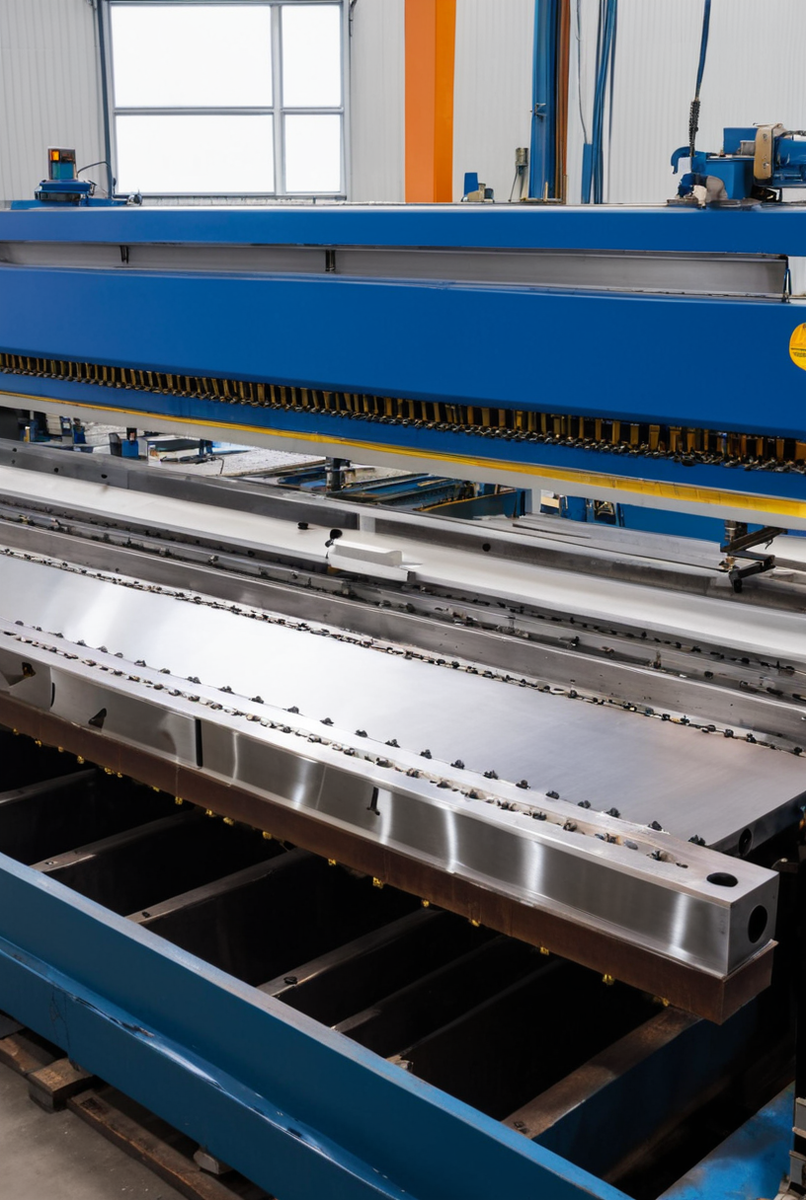 - Сегментный листогибочный станок для обработки металла: станина, гибочная балка и гибка листового металла.
