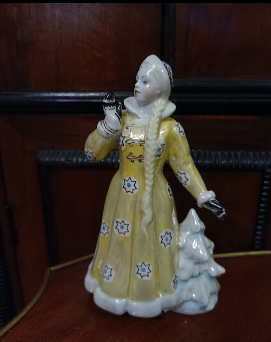 Но «та самая» Снегурочка 56-го года в солнечно-жёлтом наряде — это настоящая коллекционная редкость, артефакт времени, когда мир заново открывал для себя Россию через хрупкое очарование дулевского фарфора.