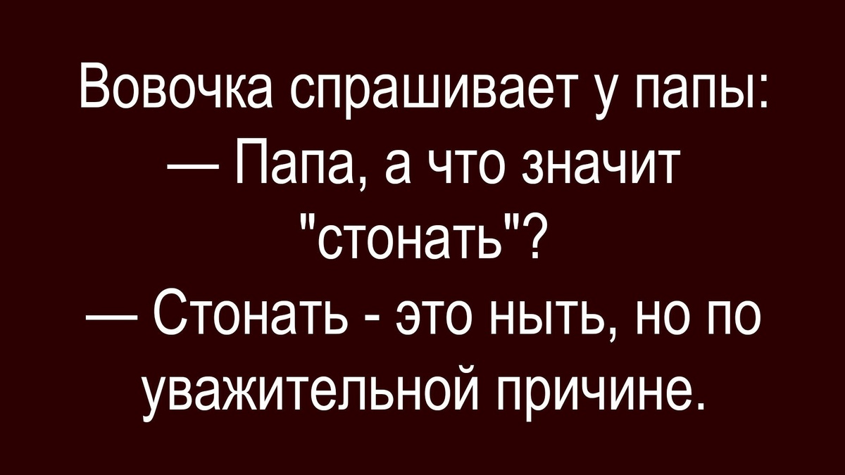 ☺☺☺ Анекдот, рассказанный одним новозеландцем. Раздетая женщина перед зеркалом в спальне, смотрит на себя и говорит мужу: — Я чувствую себя ужасно, по-моему я потолстела и вообще всё плохо. Хоть бы сделал мне какой-нибудь комплимент, настроение поднять! Муж: — Дорогая, твоя точка зрения сегодня великолепна! ❗️❗️❗️ Делитесь с друзьями постами на своей странице!