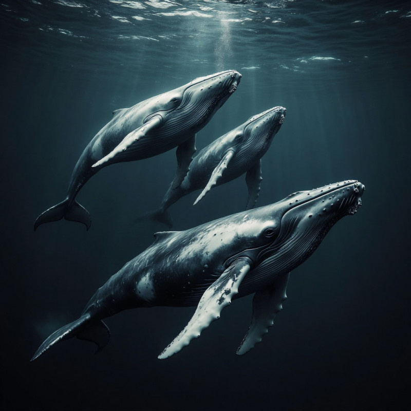 Из глубины, медленно, как воспоминания из сна, поднялись три кита. Они не плыли – невесомо парили в толще тёмной воды. Их плавные движения смотрелись частью древнего ритуала.