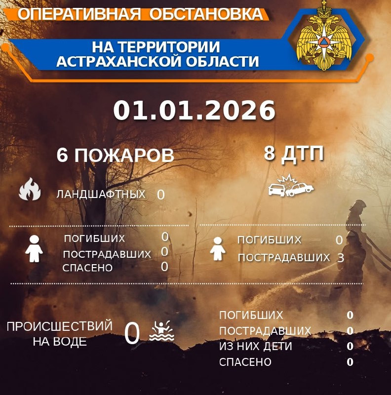 🚨Оперативная обстановка на территории Астраханской области по состоянию на 00:00 01.01.2026🚒