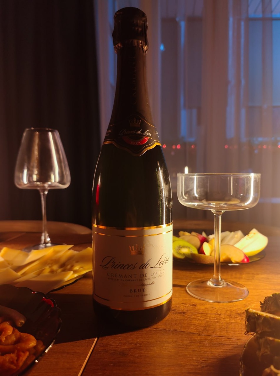 "Princes de Loire" Brut — яркое, свежее белое игристое вино, созданное из винограда сортов Шенен Блан, Шардоне и Пино Фран, выращиваемого в долине Луары. Разнообразие почвенного состава обеспечивает винограду полное фенольное созревание, а вину из него — уникальность стиля. Меловые туфовые почвы обеспечивает корням лоз максимальный дренаж, особенно в засушливый период времени, песчаник согревает, глина и суглинки обуславливают фруктовый стиль. Виноградники разбиты на склонах на высоте 450-500 метров над уровнем моря и имеют восточную экспозицию. Винификация проходит по классической технологии со вторичным брожением в бутылке и выдержкой на осадке на протяжении 12 месяцев. В аромате вина ощущаются ноты весенних цветов и спелых косточковых фруктов. Вкус вина комплексный, прекрасно сбалансированный, с яркой кислотностью и продолжительным фруктовым послевкусием. Все, что заявляет производитель- полностью отражается в бокале. Но вот по косточке есть вопросы. Она уж чересчур выпирающая, что