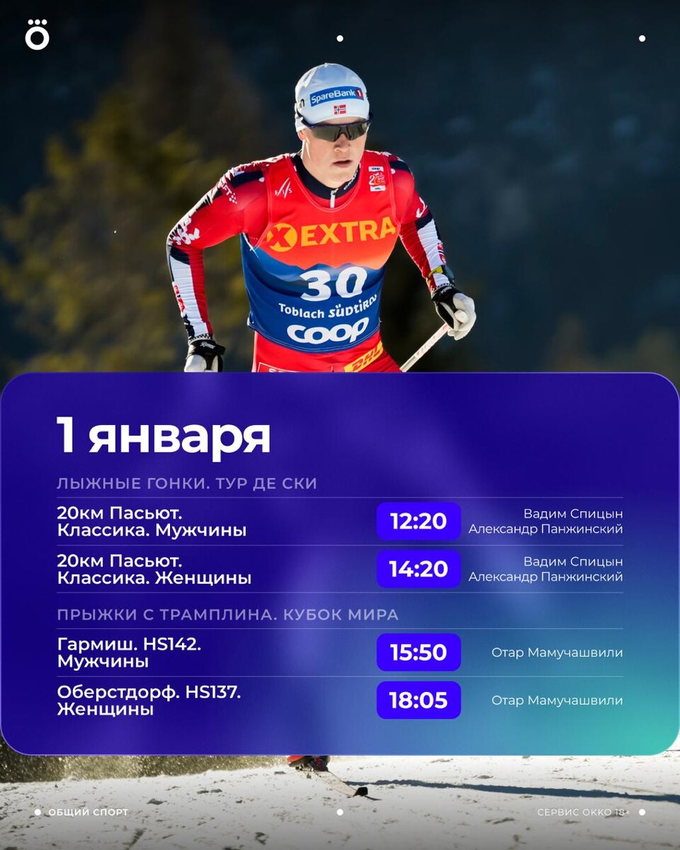 😎 Тур де Ски и прыжки с трамплина уже ждут тебя в Okko! Самое оно прийти в себя после новогодней ночи! https://okko.tv/s/wdd