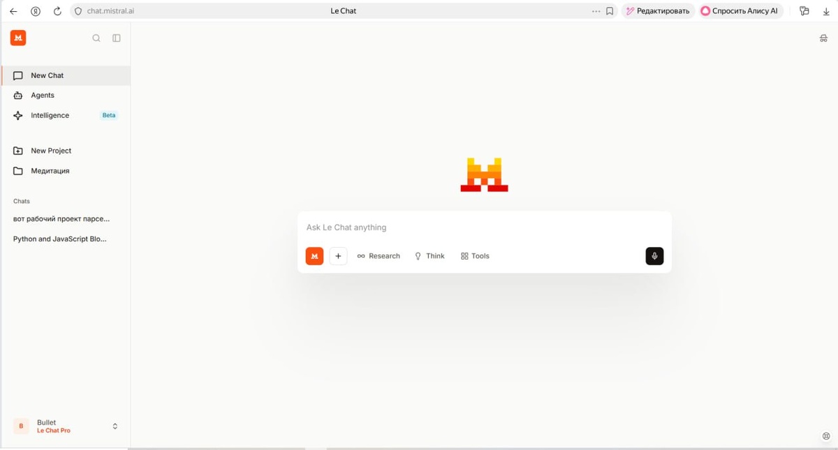 Я тут нашёл один из новых инструментов, который реально приятно удивил – Mistral и их чат Le Chat. Это не “ещё один чатик”, который пишет абзацы ради абзацев, а штука, заточенная под скорость, структуру и рабочие сценарии. Я постоянно гоняю нейросети под кодинг, тексты, ТЗ и промпты, и в этом смысле Mistral оказался очень практичным. Самое заметное преимущество – быстрый темп и адекватная подача. Когда тебе нужно быстро собрать каркас идеи, разложить задачу на модули, составить план разработки, подготовить промпт для кодера – он делает это без лишнего пафоса. Плюс мне нравится, что он хорошо держит “деловой” стиль, когда ты просишь писать структурно, с проверками, с критериями готовности. Второй кайф – удобство для работы с документами и контекстом. Ты можешь таскать туда материалы, фрагменты ТЗ, черновики, заметки, а потом просить собрать из этого понятную спецификацию. В таких задачах решает не “красота речи”, а то, насколько нейронка умеет превращать хаос в систему, и здесь Mis