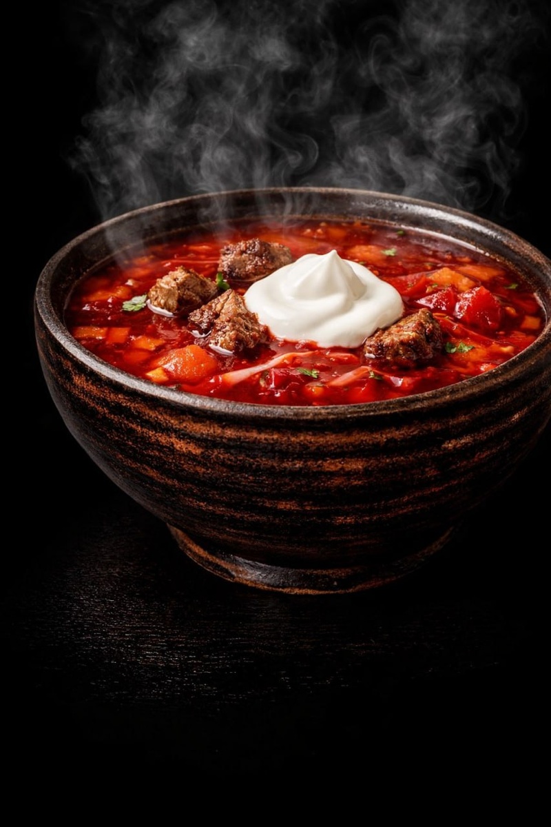 🔥 Превращаем классику в премиальный рекламный постер. Первый промпт выстраивает сложную вертикальную композицию с парящими ингредиентами, а второй — создает гиперреалистичный финальный кадр готового блюда. Идеально для сторис или меню дорогого ресторана. ⚡️ Промпт №1: Взрыв вкуса (Ингредиенты) Гиперреалистичный рекламный фуд-постер на русском языке, вертикальный формат 2:3. Абсолютно чёрный фон [#000000] на черном фоне золотым красивым шрифтом, текст на русском языке:"Кубанский борщ . Композиция выстроена строго [снизу вверх]. В самом низу — [готовый кубанский борщ в тёмной керамической миске ручной работы, насыщенный рубиновый бульон, капля густой сметаны, поднимается горячий пар]. Выше над миской парят разделённые воздухом слои ингредиентов на русском языке: [кусочки говядины], [соломка свёклы], [капуста], [картофель], [морковь], [лук], [томаты] и [зелень] на самом верху. Тонкая минималистичная типографика [золотого цвета] с короткими подписями к каждому слою. Студийное освещение,