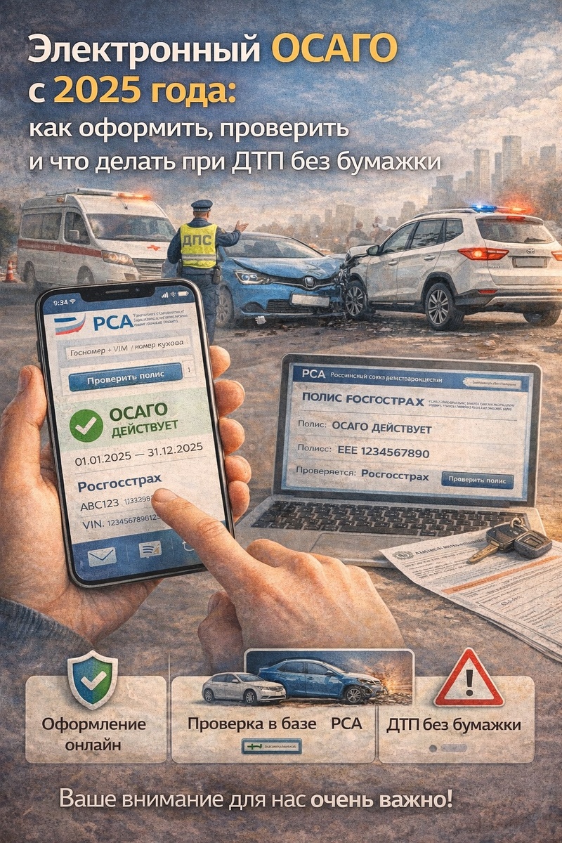 Сегодня страховка ОСАГО стала полностью цифровой — и это уже не будущее, а реальность. Бумажный полис теперь не обязателен, и многие водители задаются вопросами: как оформить электронный полис, как проверить, действует ли он, и что делать, если произойдет ДТП, а страховки «на руках» нет? Разбираемся спокойно и по шагам. Электронный ОСАГО — это тот же самый полис обязательного страхования, просто оформленный онлайн. Его юридическая сила полностью идентична бумажному документу. Главные особенности: