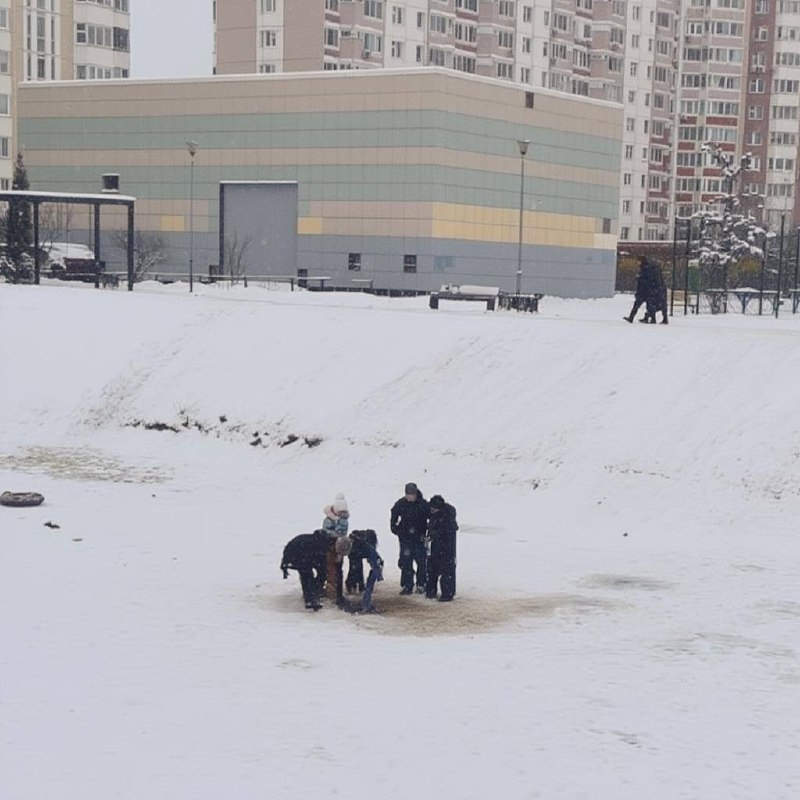 Дети на Коровке сделали прорубь и купают там тележку из магазина. А потом там же на льду взрывают петарды 💥