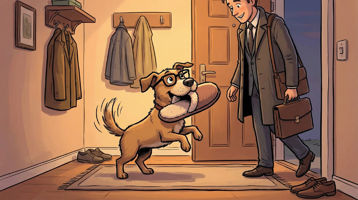 Заходишь ты домой, а твоя собака срочно хватает ботинок/игрушку/полотенце (а если не повезло — твою руку) и начинает с этим подношением радостно скакать. Что это за финт такой? Это связано с эмоциями, саморегуляцией и очень древней собачьей привычкой: когда внутри слишком много, рот становится кнопкой сброса напряжения.