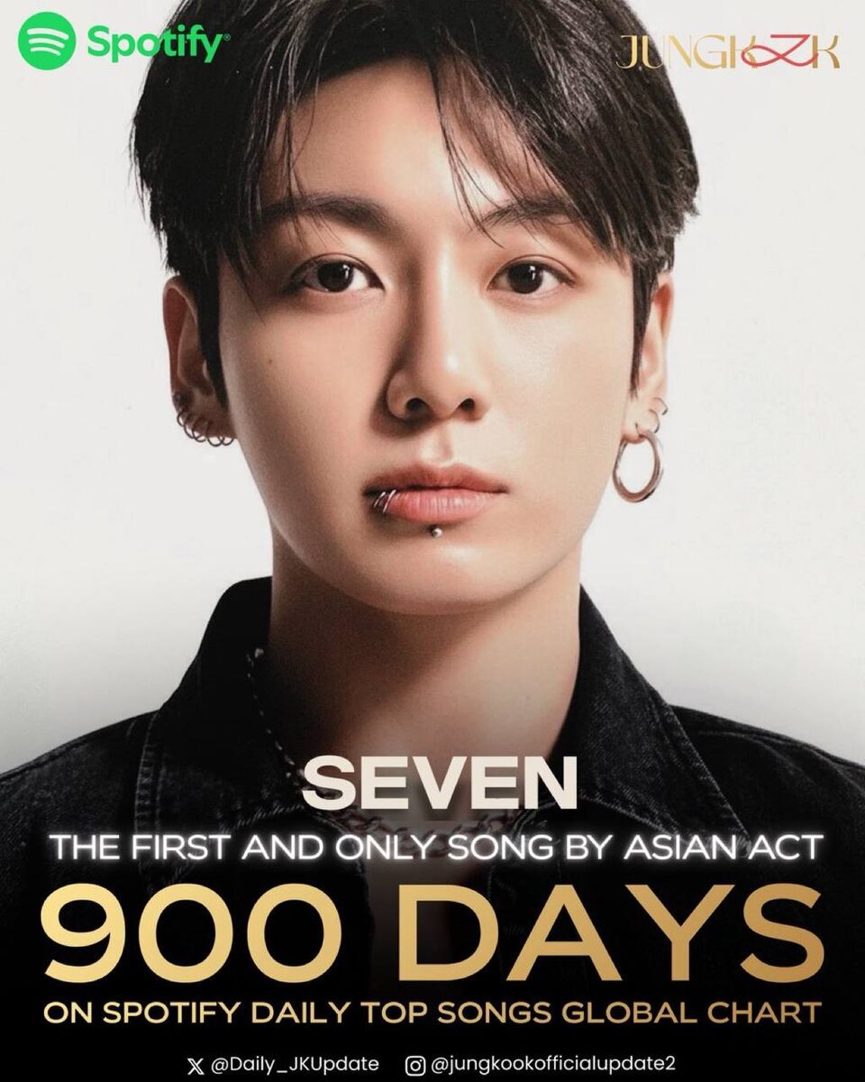 🍒 "Seven" становится первой и единственной песней азиатского артиста, которая провела 900 дней в чарте Spotify Global Daily.
