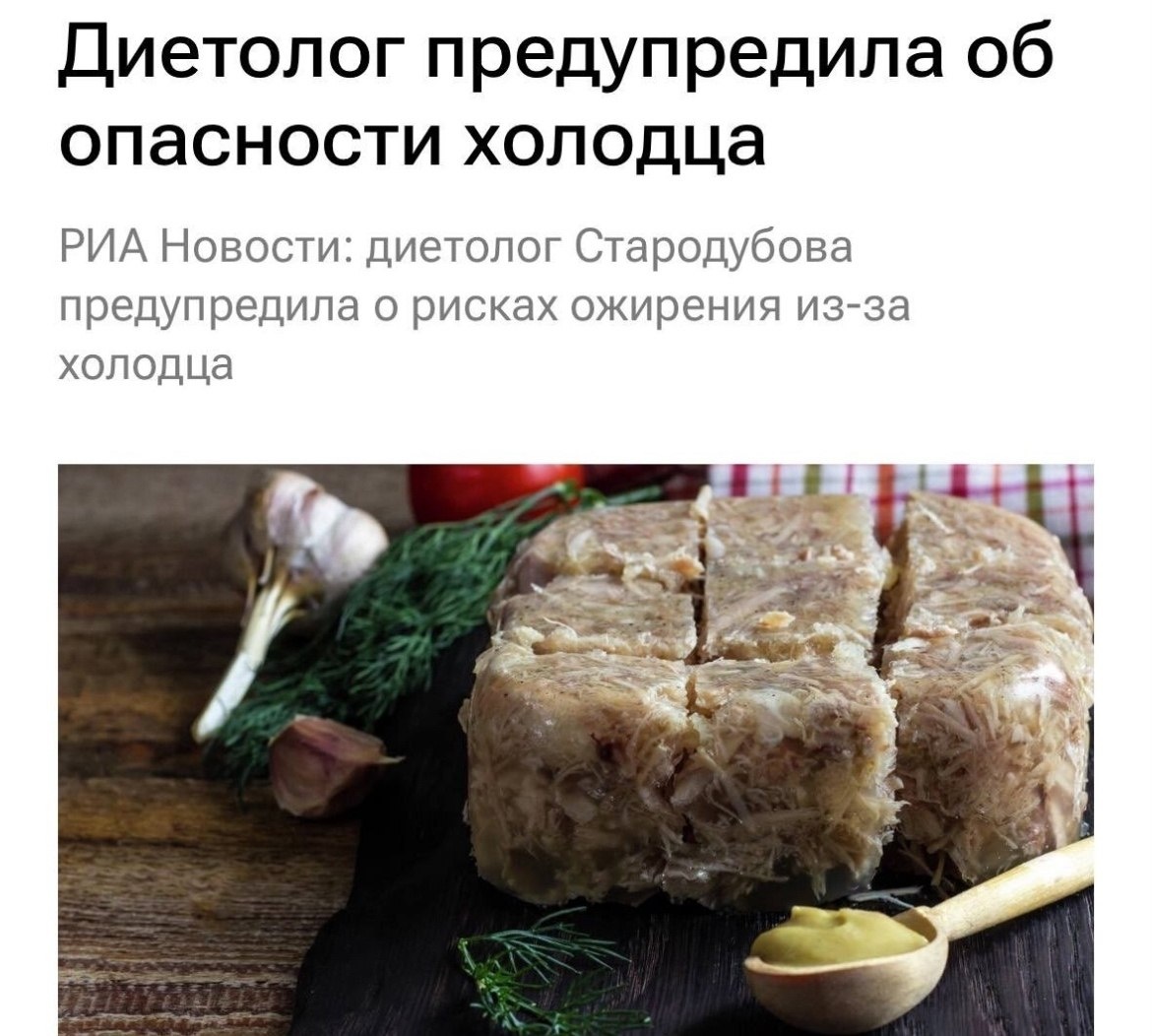 При этом мнение о пользе холодца для кожи и суставов — выдумка: белок из холодца не запускает выработку собственного коллагена, а просто переваривается.