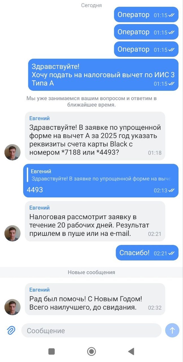 . И даже подобрал активы, которые буду "подбирать" в этом году. Короче говоря, решения по стратегии - уже приняты. Но думаю, первого Января - не стоит душнить пока что😅 Кстати, налоговый вычет в чате по ИИСу я попросил почти сразу после наступления 1го числа😅 Это уже реализация новогодней стратегии Инвестирования. Но, наверное сегодня пока писать о ней особо не буду😃 Сегодня, празднуем! Всех с наступившим, друзья! 🔥💫