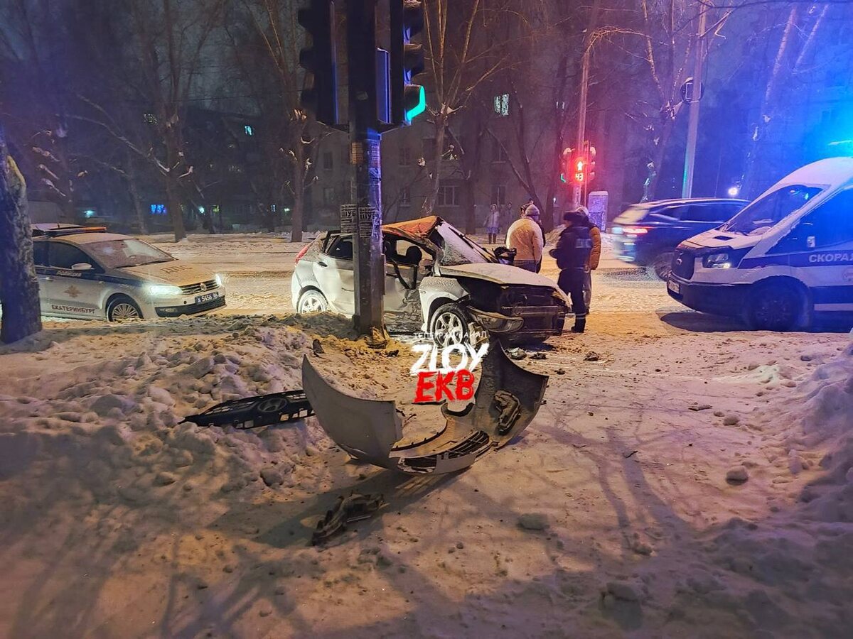 На Советской, 16 в районе полуночи жёстко разложилась тачка. Первое ДТП нового года, не успели даже шампанское выветрить.