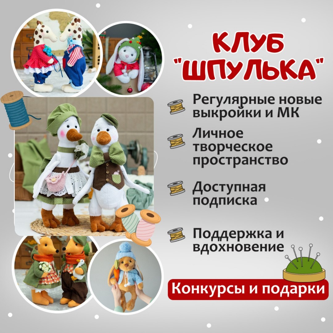 ? В «ШПУЛЬКЕ» ВЫ НЕ УПРЁТЕСЬ В ОДИН ПРОЕКТ 🔥 Бывает так: хочется чего-то новенького… То ли зайку, то ли ёжика, то ли котика в пижаме... И главное — чтобы не “один МК и всё”, а чтобы был выбор и настроение. Вот именно для этого я и придумала клуб «Шпулька» 💛 Это как творческий шведский стол: 🧵 выбираете, что хочется шить прямо сейчас ✨ не ограничиваете себя одним проектом 📚 открываете библиотеку и ищите то, что по душе 🔥 каждый месяц новый совместный пошив ВСТУПИТЬ 👉 https://mimido.ru/club_bobbin?utm_source=tgkanal В «Шпульке» живёт всё: куклы, игрушки, зверята, интерьерные персонажи, сезонные коллекции. И вы всегда найдёте то, что совпадает с вашим “хочу” именно сегодня. В этом месяце внутри клуба мы шьем очаровательную парочку винтажных гусей А к ним БОНУС — ГУСЬ ПИЛОТ ПЕРЕХОДИ В ШПУЛЬКУ 👉 https://mimido.ru/club_bobbin?utm_source=tgkanal